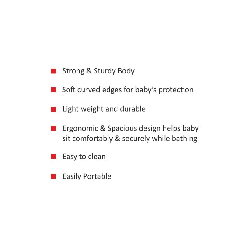 Ergonomic & spacious design helps baby sit comfortably & securely while bathing