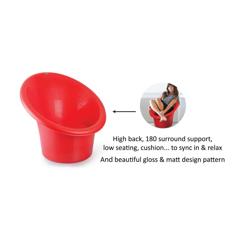 High back, 180 surround support, low seating, cushion to sync in & relax and beautiful gloss & matt design pattern