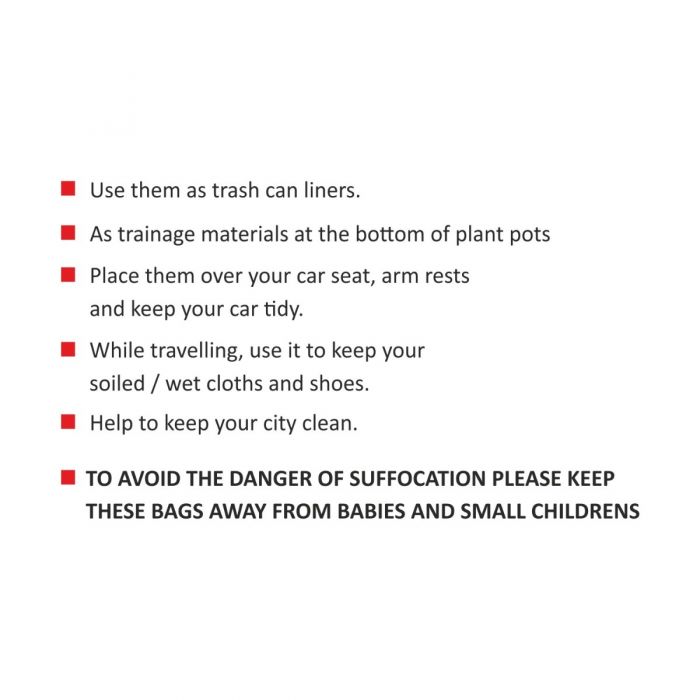 - TO AVOID THE DANGER OF SUFFOCATION PLEASE KEEP THESE BAGS AWAY FROM BABIES AND SMALL CHILDRENS