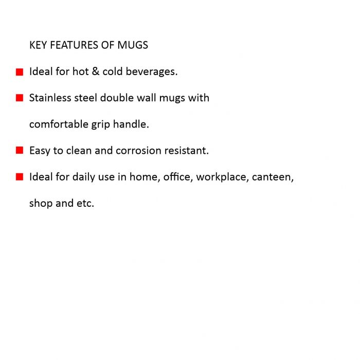 Stainless steel double wall mugs with comfortable grip handle