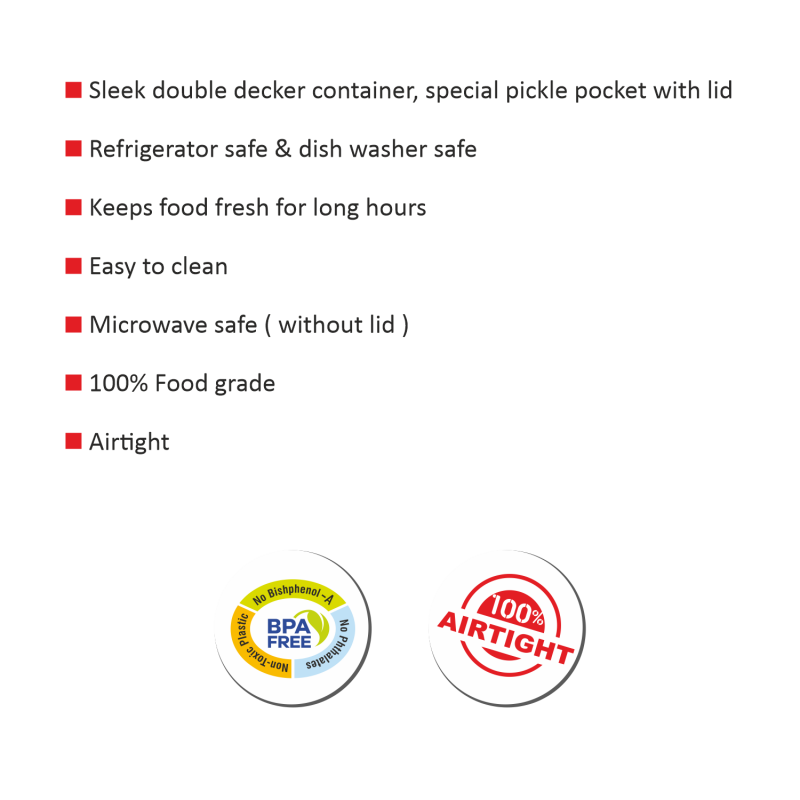 Sleek double decker container, special pickle pocket with lid