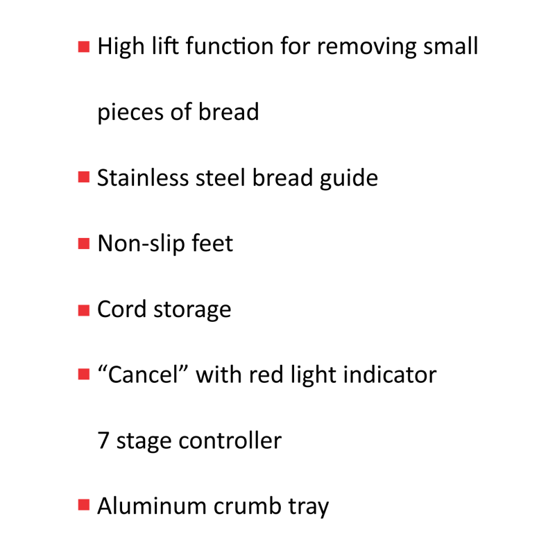 High lift function for removing small pieces of bread
