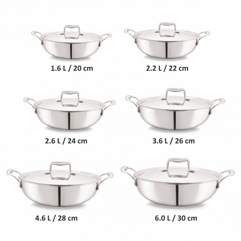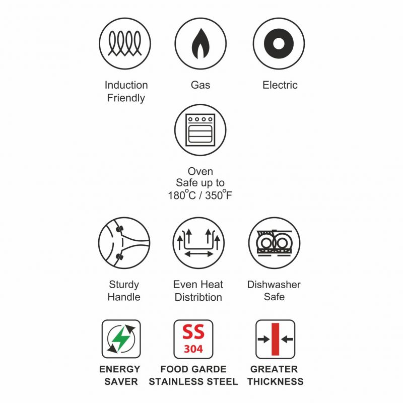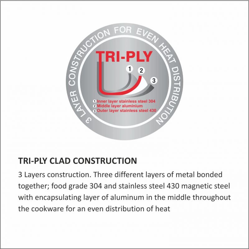 3 Ply construction consists of durable stainless-steel encapsulating layes of aluminium core for allow fast & even heating